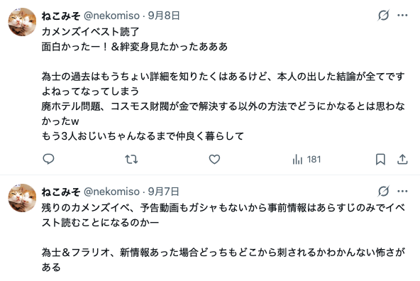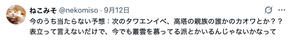 ・ネタバレ要素はこんな【ネタバレ】畳む感じで隠します